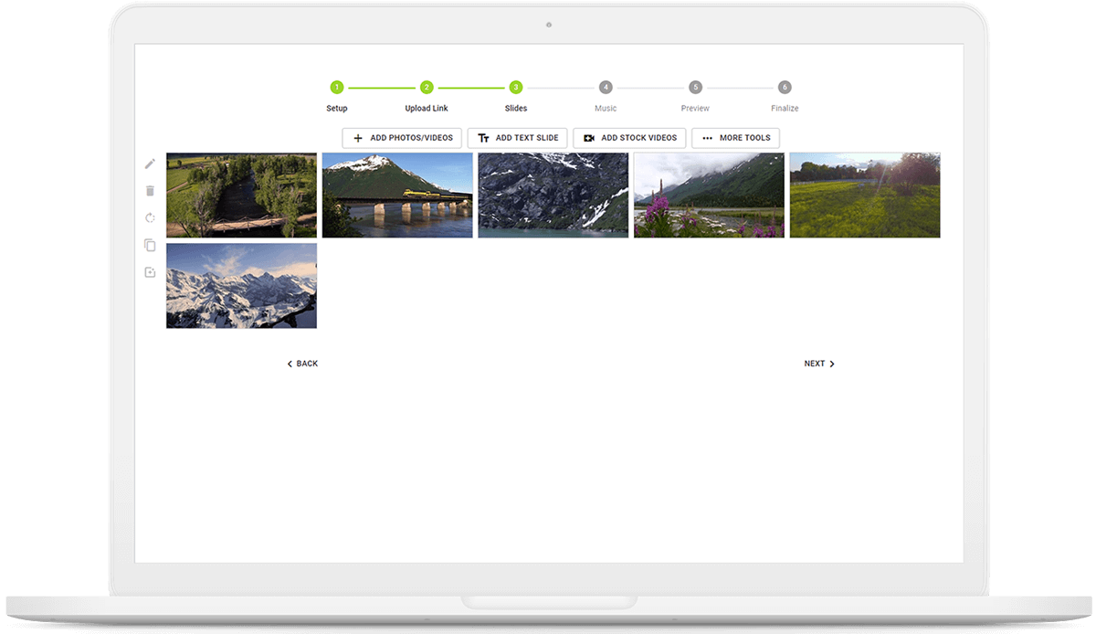 “Quick Create” is designed for mobile devices such as phones and tablets. Simply choose the 7″or 10″ Video Book, then choose “Quick Create”. From here simply follow the simple steps to creating your Video Book.